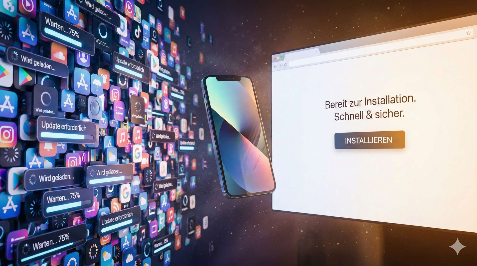 Progressive Web Apps lösen dieses Dilemma. Sie kombinieren die Reichweite einer Website mit dem Nutzererlebnis einer nativen App. Ohne App-Store, ohne doppelte Entwicklung, ohne die üblichen Hürden.